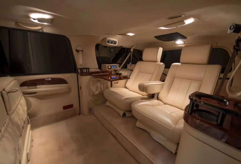 When it comes to personalizing your Ford Excursion limo, the possibilities are extensive. You can choose from a wide range of exterior colors including classic black, pristine white, vibrant pink, or even tuxedo finishes to perfectly match your eventβs theme and style. Inside, the Ford Excursion limo interior can be tailored with plush diamond-stitched leather seating, ambient LED and fiber optic lighting, and mood-enhancing strobe or neon lights. Entertainment options such as flat-screen TVs, premium Bose surround sound systems, Bluetooth connectivity, and multimedia consoles create a concert-like atmosphere on wheels.