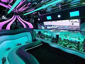 Inside the Ford Excursion limo interior, youβll find a luxurious space crafted for maximum comfort and entertainment. Plush leather seating arranged to accommodate large groups invites relaxation, while the ambient LED lighting sets the perfect mood for any occasion. The limo is equipped with state-of-the-art entertainment systems, including flat-screen TVs, Bluetooth connectivity, and premium sound systems to keep the party going. A fully stocked wet bar offers refreshments on the go, making your ride both enjoyable and convenient. Every detail is thoughtfully designed to create an upscale atmosphere tailored to your needs.