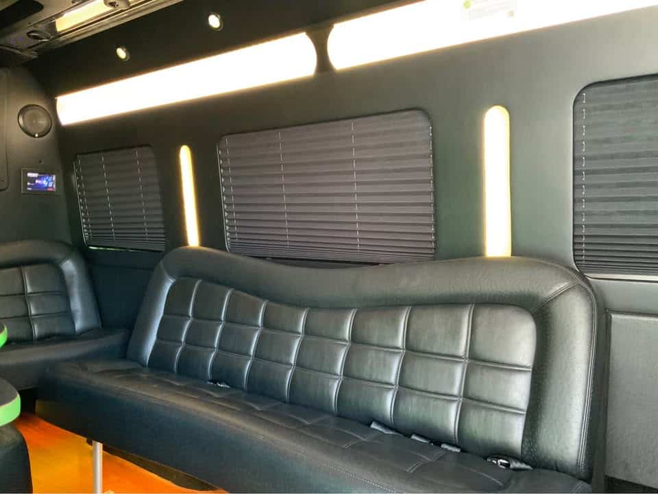 A 15 passenger party bus comfortably accommodates up to 15 guests, making it ideal for medium-sized groups such as birthday parties, corporate outings, weddings, or family reunions. These buses typically feature spacious bench or wraparound leather seating that encourages socializing and comfort. The interior height allows passengers to stand or move around easily, enhancing the party atmosphere while on the road. This size strikes a balance between intimacy and space, perfect for groups who want luxury without the bulk of a larger coach.